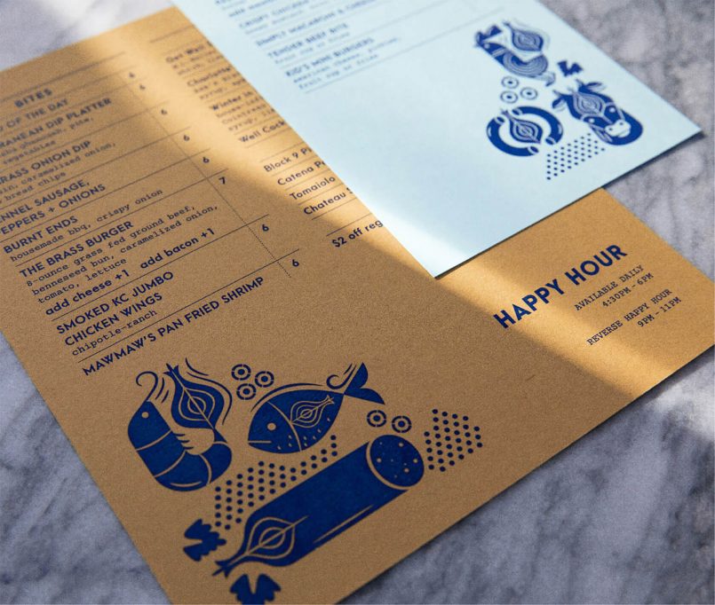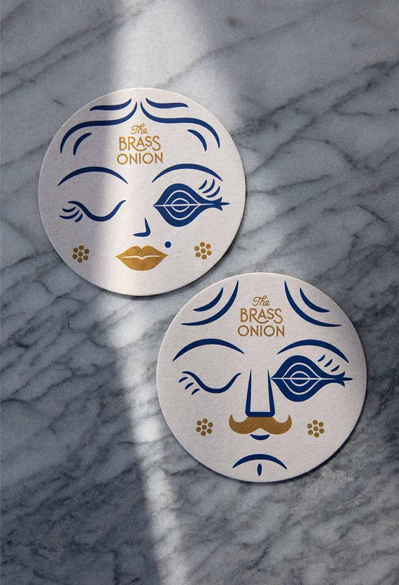 洋蔥作為品牌標(biāo)識的核心元素,其形象在設(shè)計(jì)中反復(fù)出現(xiàn),為整個(gè)視覺系統(tǒng)注入了一抹俏皮的創(chuàng)意。這一圖案不僅融入了各類圖標(biāo)和視覺元素,還啟發(fā)了圖案設(shè)計(jì),靈感源自餐廳內(nèi)引人入勝的馬賽克地磚。從菜單、名片到包裝,這些圖案無處不在,共同營造出一種與用餐體驗(yàn)相得益彰的統(tǒng)一視覺感受。