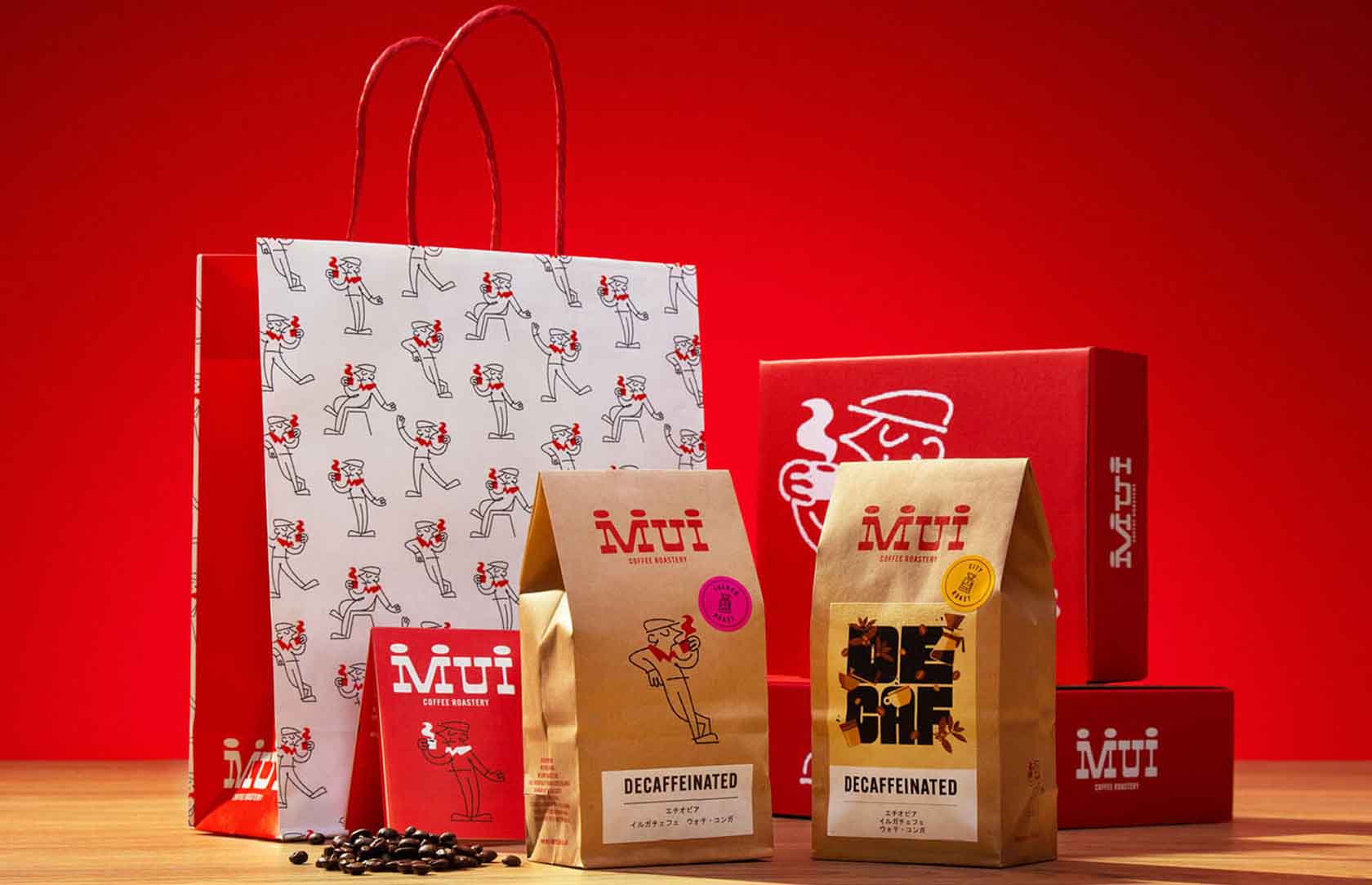 日本的咖啡烘焙店MUI,在意大利工作室的協(xié)助下,以一種融合意大利和日本文化的新穎形象呈現(xiàn)給顧客,這種設(shè)計(jì)靈感來源于1960年代的意大利電視節(jié)目“Carosello”。這個(gè)節(jié)目以其獨(dú)特的真人表演、木偶和動(dòng)畫吉祥物而聞名,與日本對卡通人物的熱愛相結(jié)合,為MUI的品牌形象帶來了獨(dú)特而難忘的轉(zhuǎn)變。 MUI的新外觀以醒目的紅色為主色調(diào),每個(gè)咖啡品種的包裝上都有定制的插圖,凸顯其原產(chǎn)地特色。這種設(shè)計(jì)不僅體現(xiàn)了意大利懷舊風(fēng)格,也展現(xiàn)了日本對古怪人物的熱愛,使得MUI的品牌形象更加生動(dòng)和具有辨識度。
