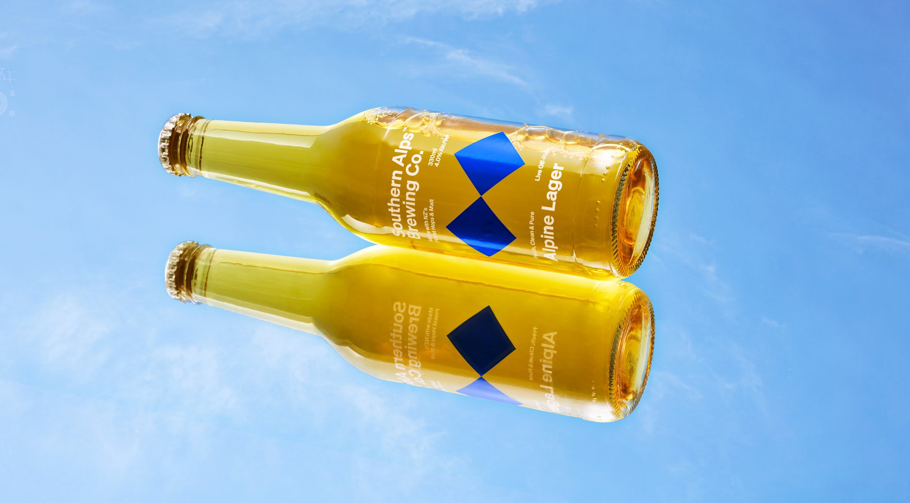 設(shè)計理念以紐西蘭南島滑雪道和冰川山脈的形象作為啤酒品牌視覺設(shè)計,青藍(lán)為品牌的主色調(diào),結(jié)合白色漸變和反射,創(chuàng)造出抽象的山脈和冰川景觀。 瓶身以更簡約的標(biāo)志性形式使用,強(qiáng)調(diào)了清爽的優(yōu)質(zhì)貯藏啤酒,彰顯冒險的精神。