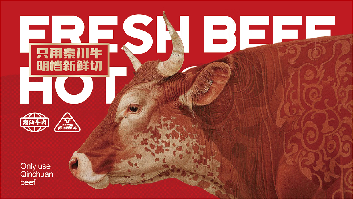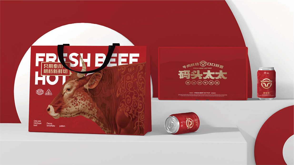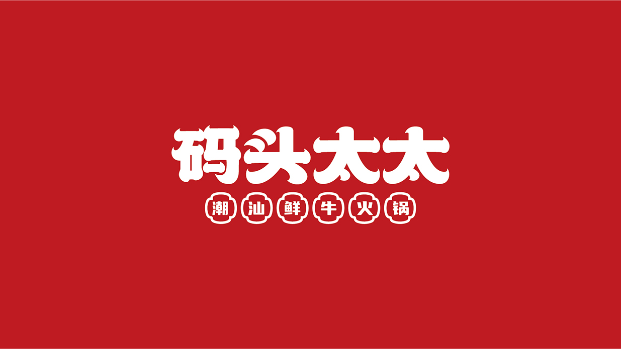 品牌logo巧妙融入牛頭元素,形態(tài)簡潔而富有力量感,既是對潮汕牛肉火鍋核心食材的直接詮釋,也是對潮汕農(nóng)耕文明與自然和諧共生的致敬。牛頭圖騰的設(shè)計,線條流暢,形態(tài)飽滿,寓意著碼頭太太選用上等秦川牛,每一口都是對食材原味的尊重與傳承。同時,牛角狀的字體設(shè)計,增添了幾分俏皮與靈動,讓品牌形象更加生動有趣,易于記憶。