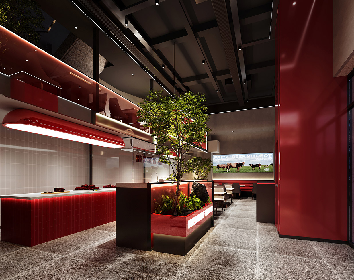 品牌主色調(diào)定為鮮艷的紅色,靈感源自潮汕地區(qū)熱情好客的傳統(tǒng)風情與火鍋烹飪時翻滾的熱烈氛圍。這抹紅色,象征著碼頭太太對食材品質(zhì)的極致追求與對顧客服務(wù)的滿腔熱忱。